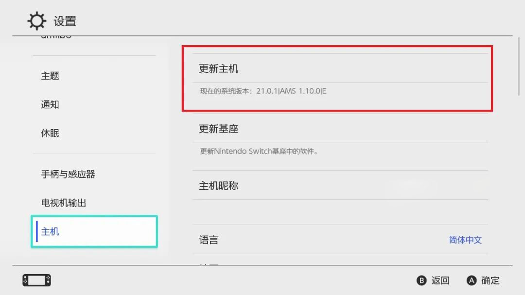 11.重启后,打开【设置-主机】确认大气层版本以及固件版本成功升级。