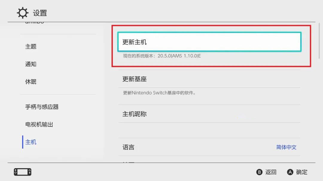 4.进入系统后,打开【设置-主机】看到当前固件版本20.5.0大气层版本1.10.0[可跨版本升级]