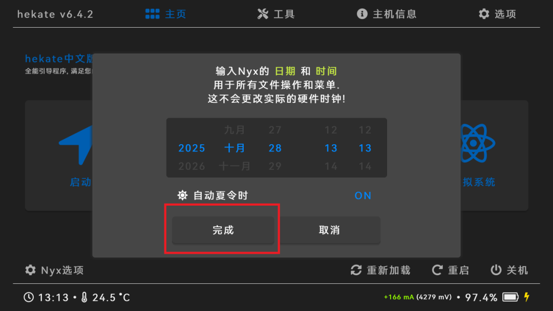 系统包复制好后将SD卡插回switch,并引导开机。进入到hekate界面主程序