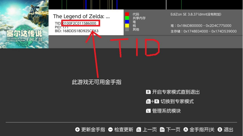 进灯泡如果显示此游戏无可用金手指,是因为你没切换专家模式,请按一下ZL+R,退出灯泡,重新进灯泡就有了!)
