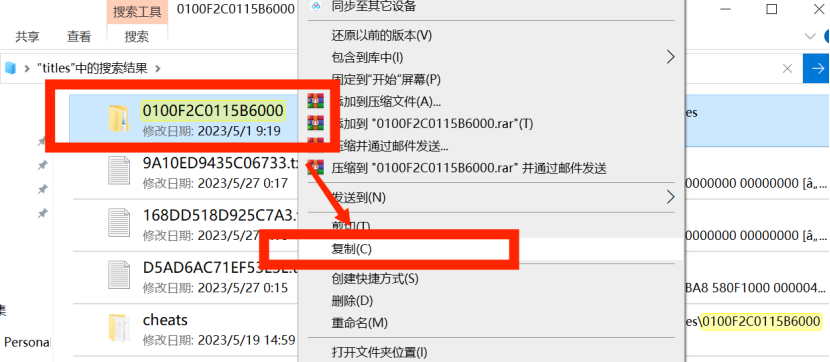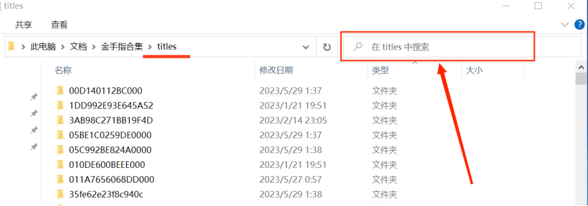 然后打开titles文件夹,搜索你的游戏TID,搜到以后复制到contents里面。